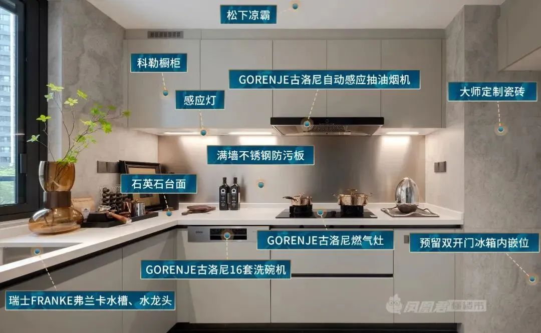 配备的品牌厨电更是深藏不漏的美食“利器”——大吸量抽油烟机、纯铜炉头燃气灶、16套洗碗机都选用欧洲进口四大家电品牌之一的gorenje古洛尼,性能和颜值高度统一。