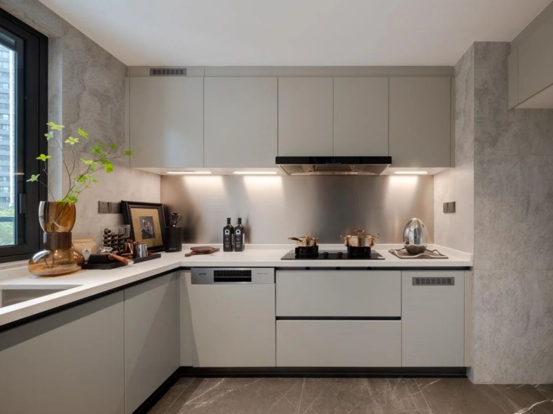 舒适有度的厨房更能催化对生活的热情。城市溪谷三期在设计厨房空间之初,就从使用者的角度出发,用精研优化的功能性考虑一寸一物。