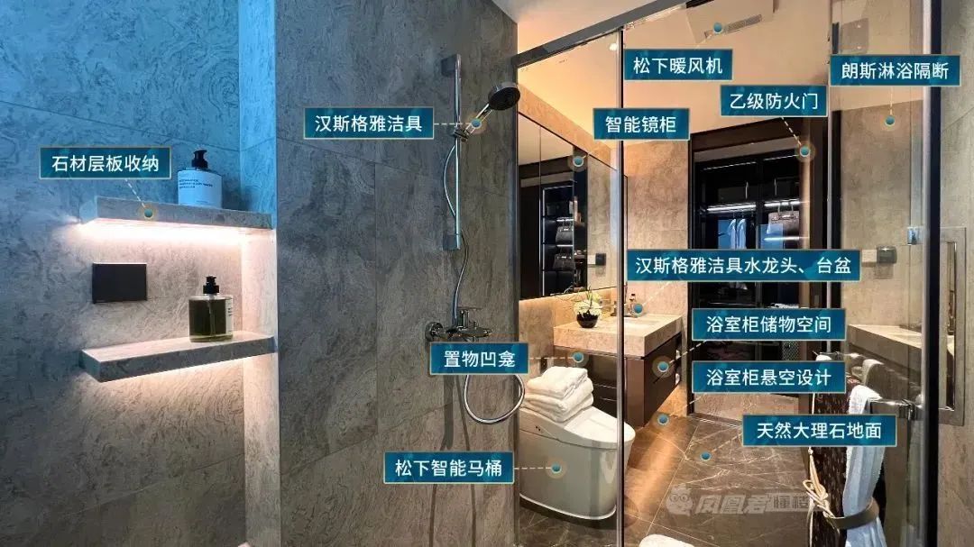 城市溪谷遵循对品质的至高需求,打造三分离卫生间,配备花洒界的“爱马仕”——汉斯格雅台盆、水龙头、花洒,成就一方洁净的奢适天地。